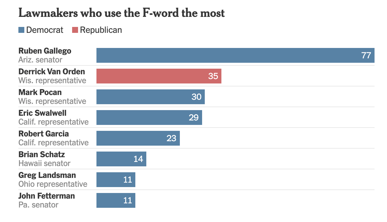 GALLEGO earned a new distinction from the New York Times this week, which writes: “Of all the Democrats using the F-word, one particular senator has turned the practice into a sort of unseemly art….”