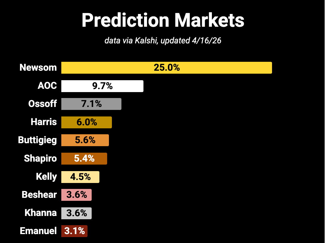 All of this is also updated in my Big, Beautiful 2028 Tracker – it has several tabs, including travel, fundraising, and polling/prediction markets trackers, which is a thing I’ve learned most people did not realize.